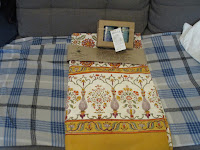 Saffron Marigold Orange Blossom Persian Mediterranean Floral Bedspread & Sapphire Seas Hand Painted Pillar Candles